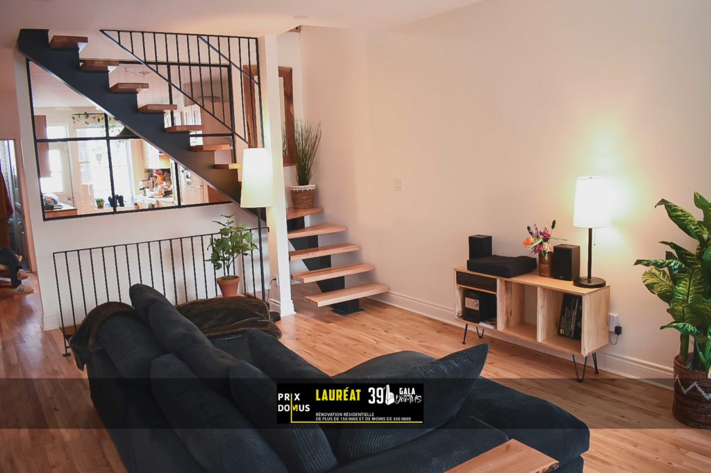 Ce porjet a été réalisé dans le quartier de La Petite-Patrie à Montréal. Il a été motivé par le souhait d’une famille qui désirait agrandir l’espace disponible de son logement. Pour se faire, le logement situé au dessus du sien y a été rattaché.